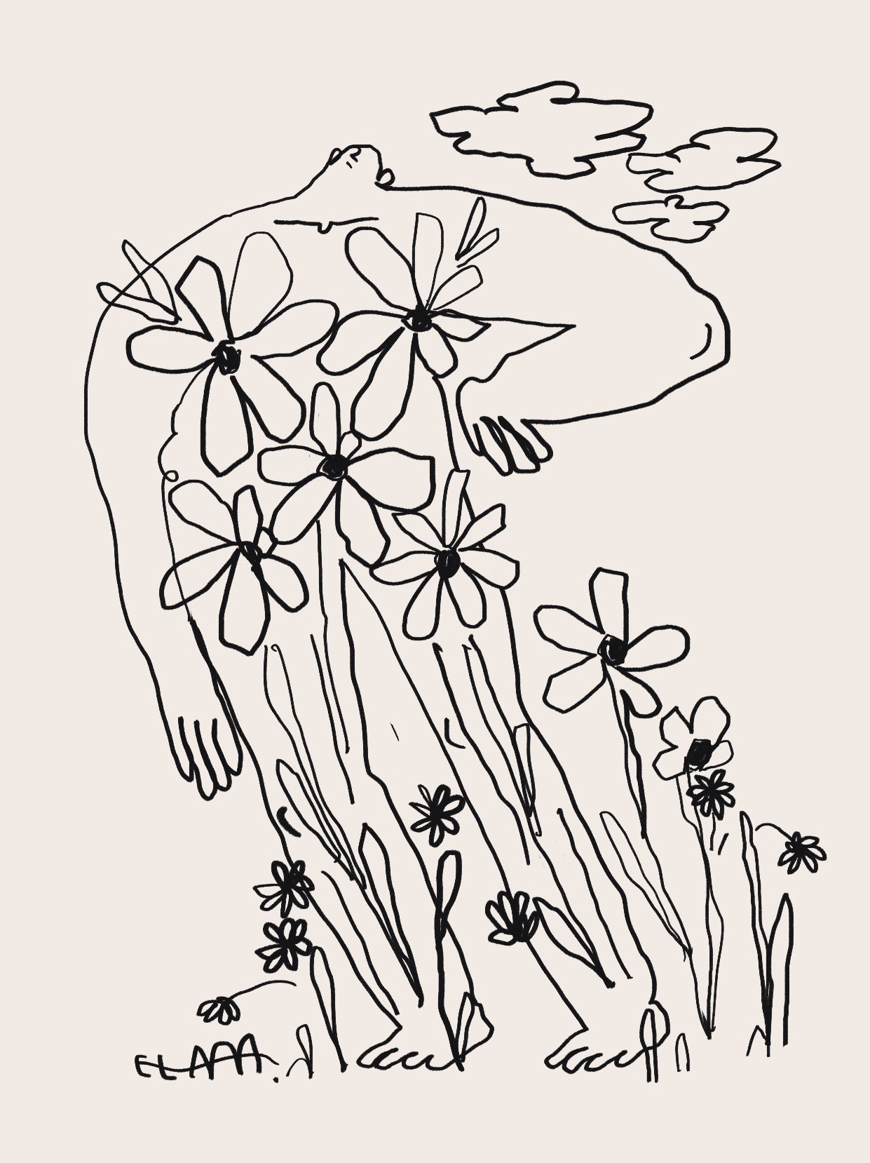 Hello, my name is Elana, and I’m a doodle artist from Cape Town, South Africa. My work offers a wink at the world and invites you to take up space, just as you are.
